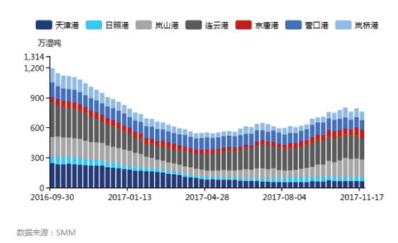 如上圖所述,國內(nèi)七大港口鎳礦庫存持續(xù)維持在年內(nèi)高位。